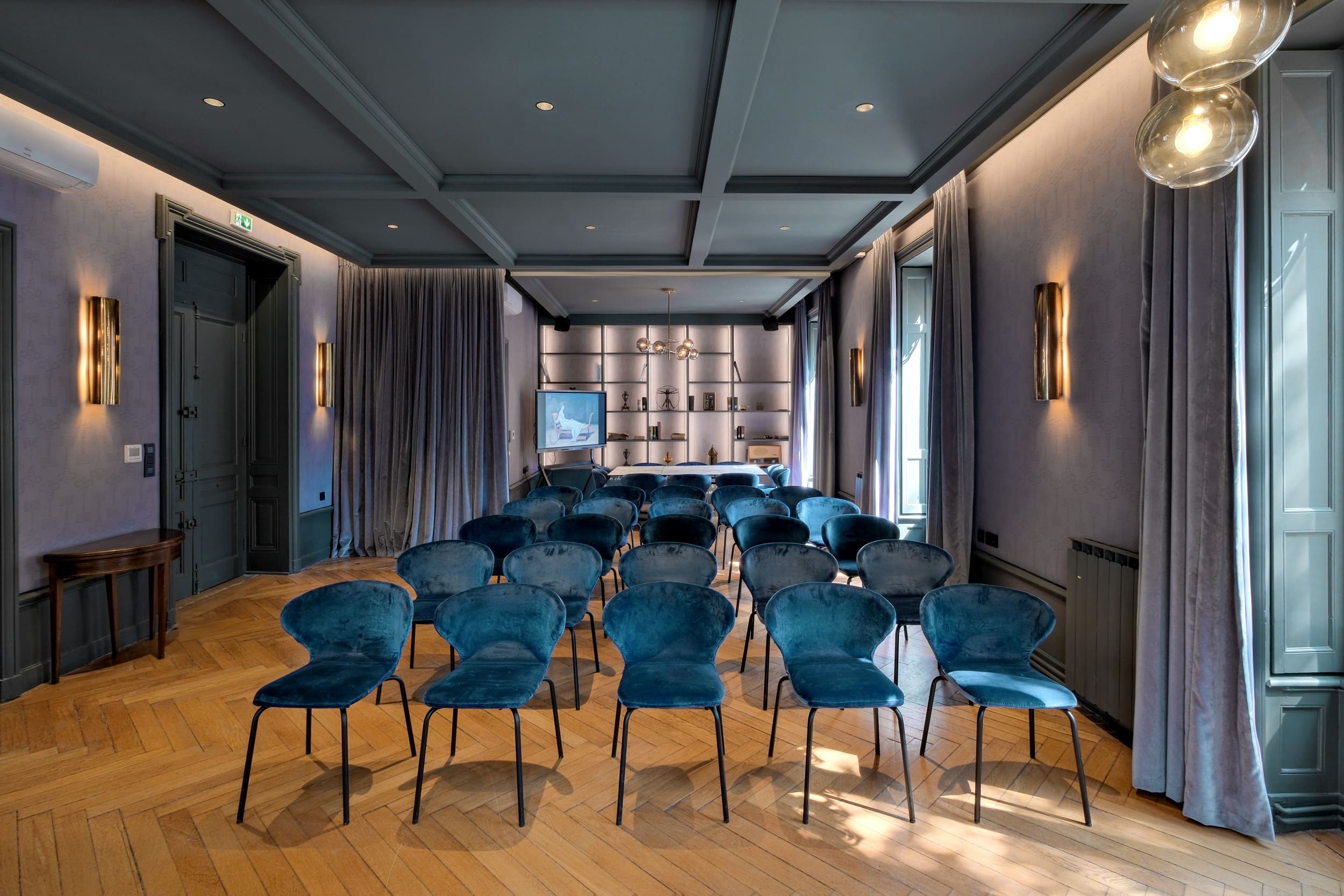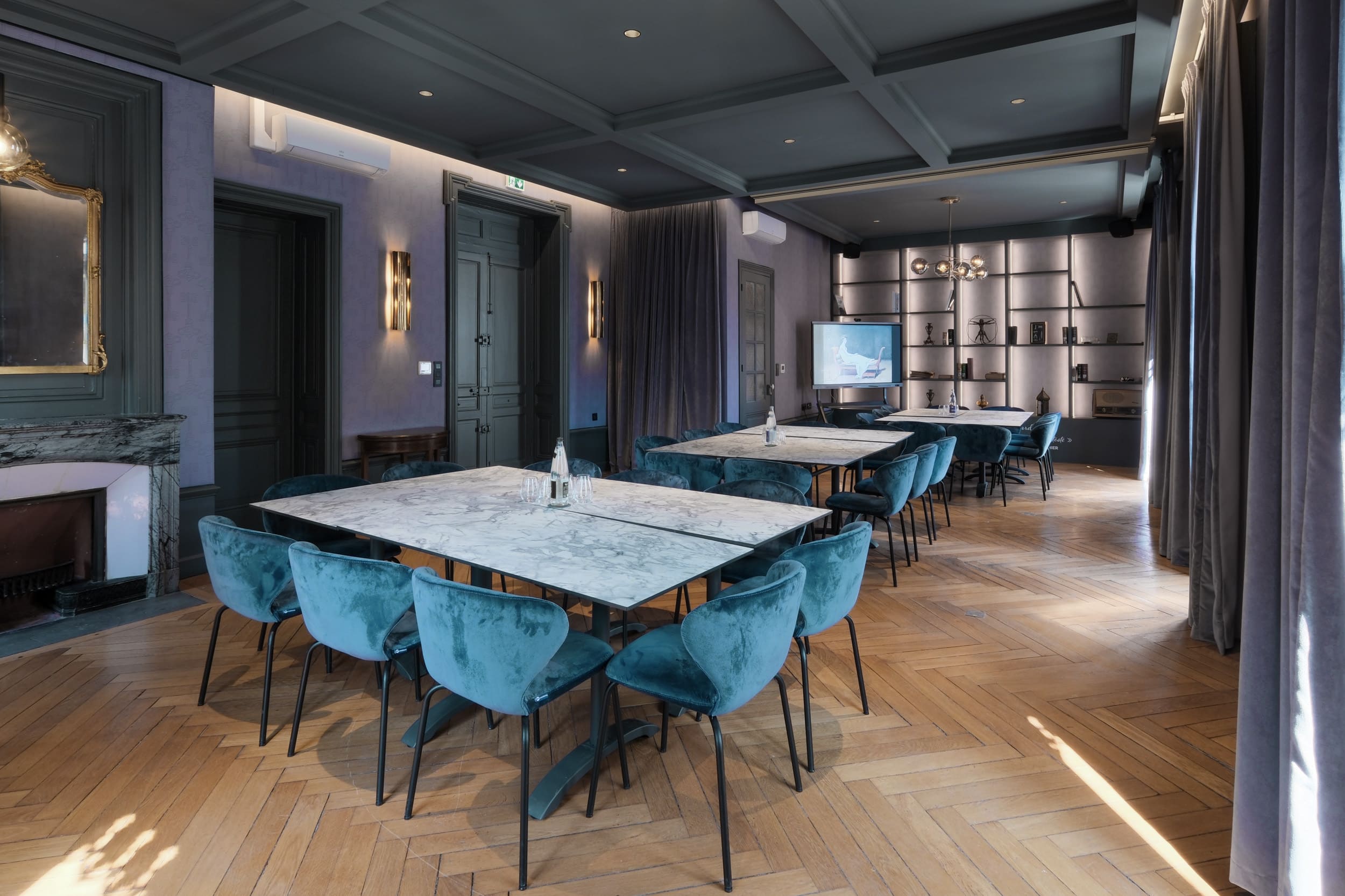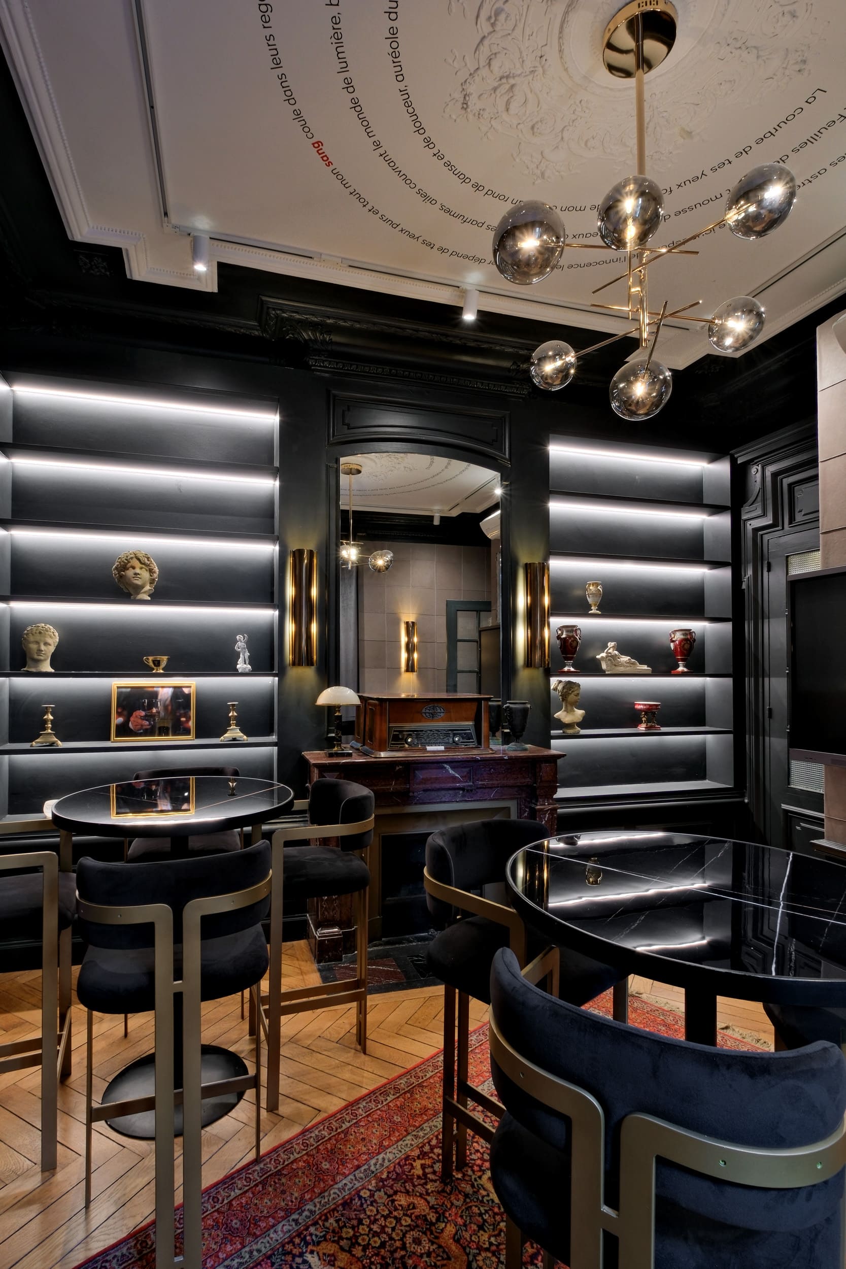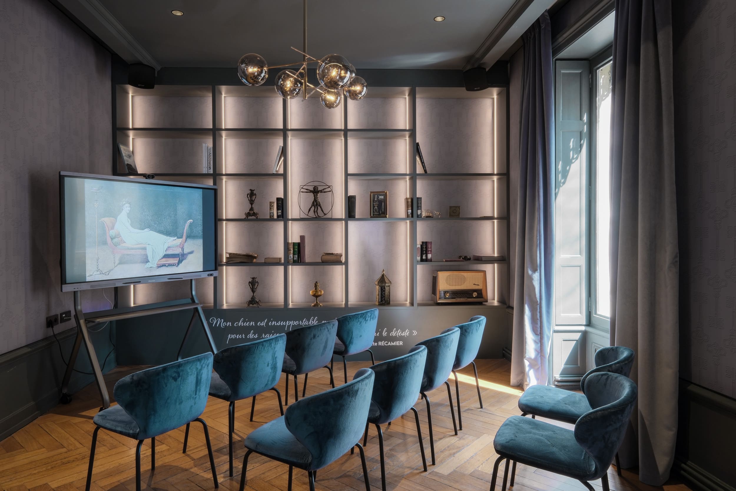 Les salons de Juliette, salons de conversation qui ont accueilli les grands esprits de leur temps. Cette pièce fait battre le cœur de la maison en accueillant des kick off, des événements professionnels, des concerts, des lectures, des projections de films, des actions caritatives… Nous y avons réalisé les bibliothèques et de magnifique plafond en bois.