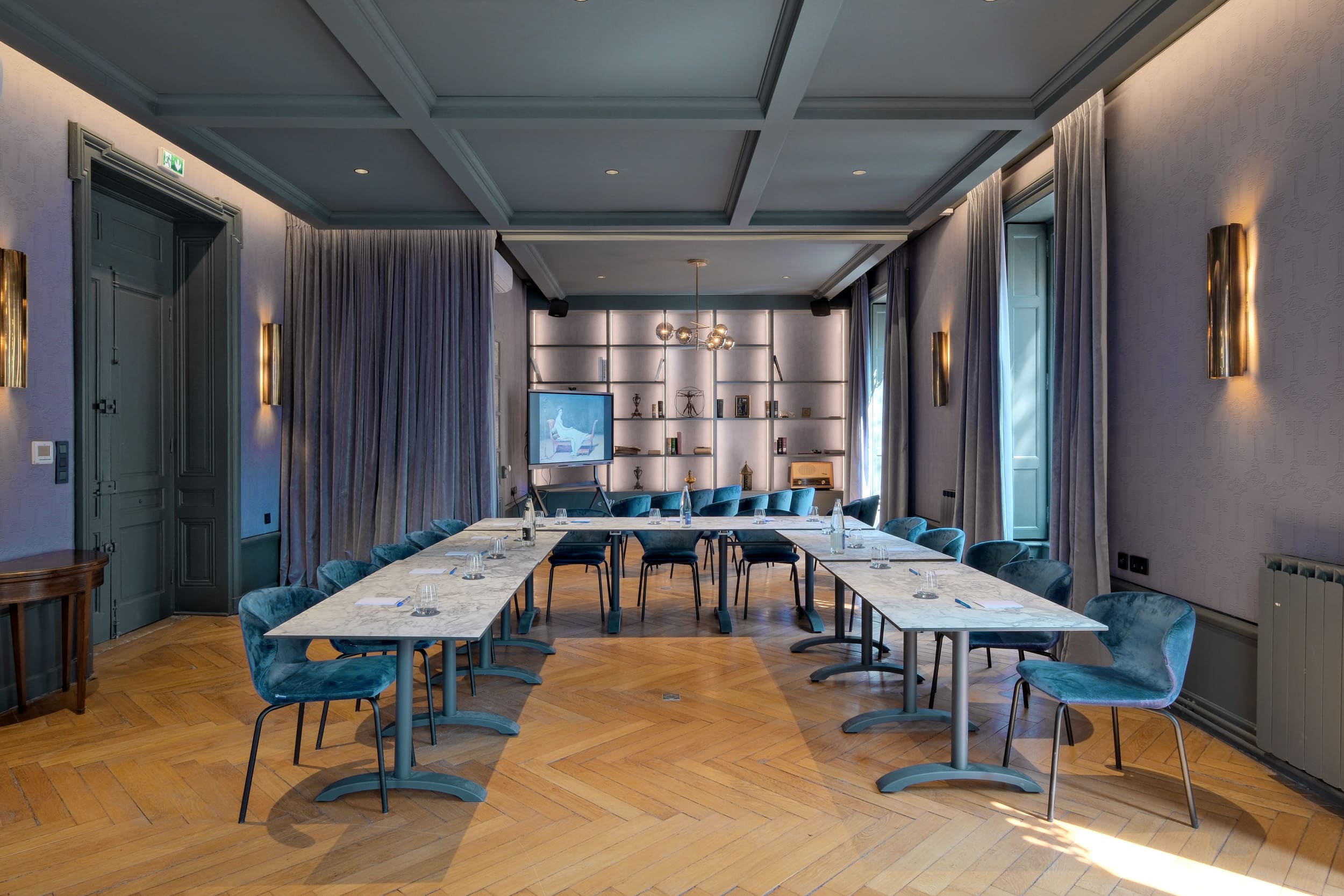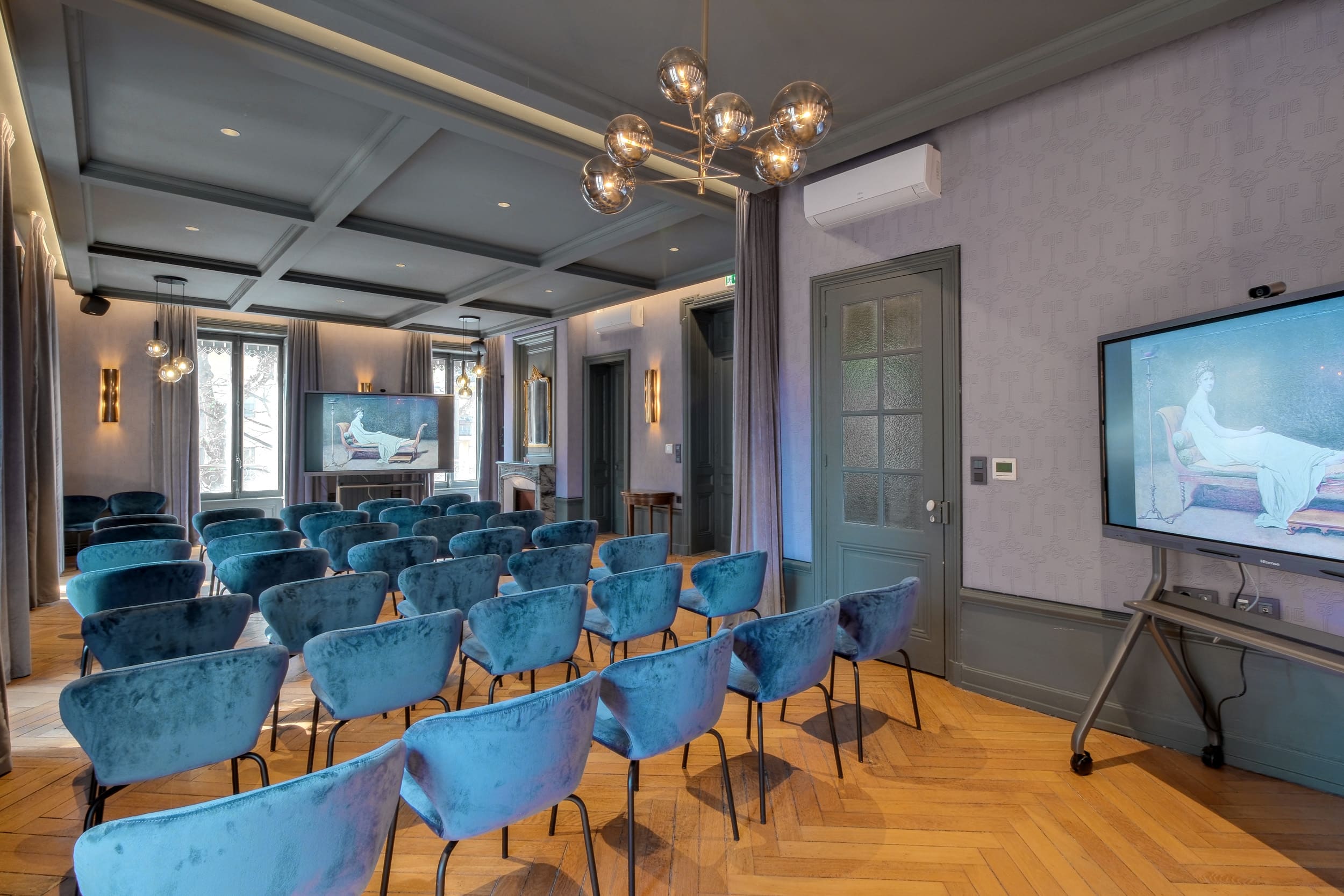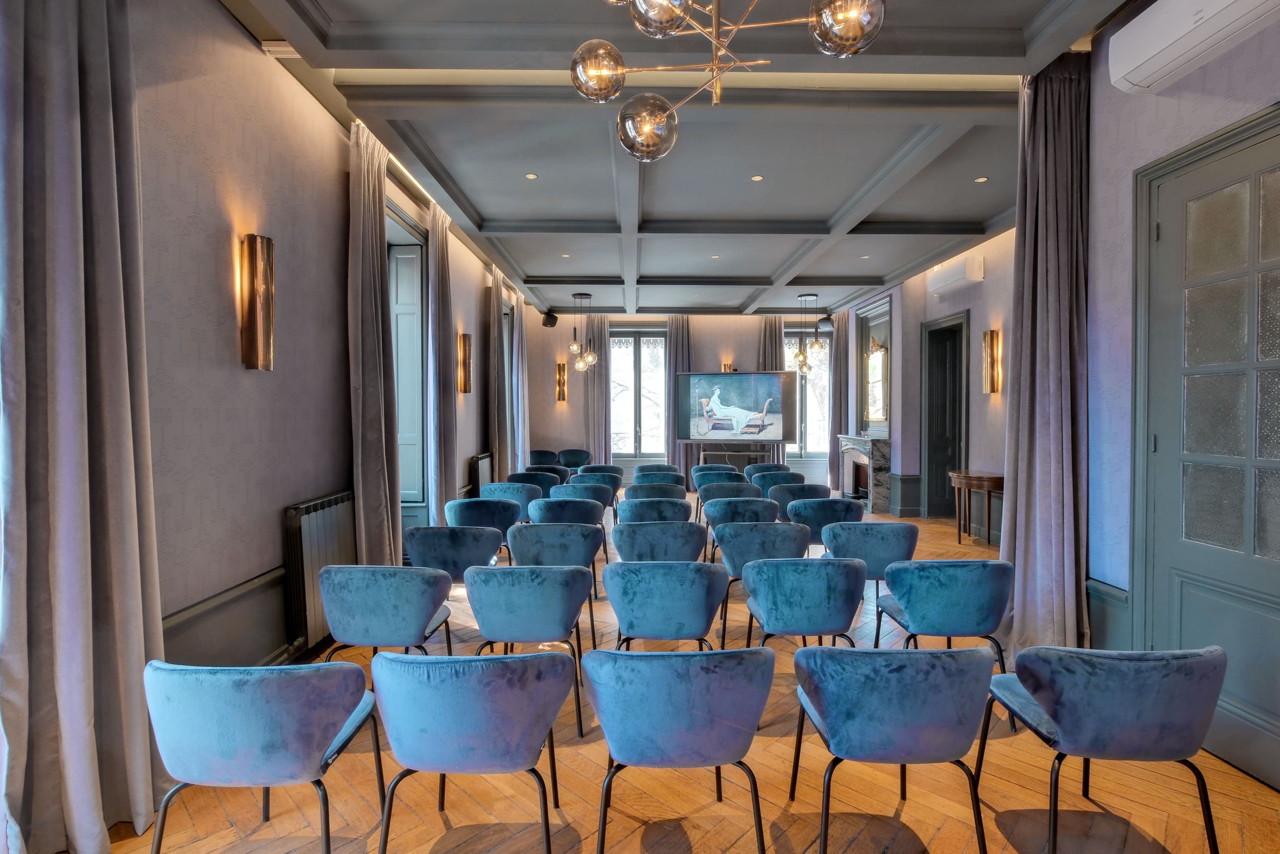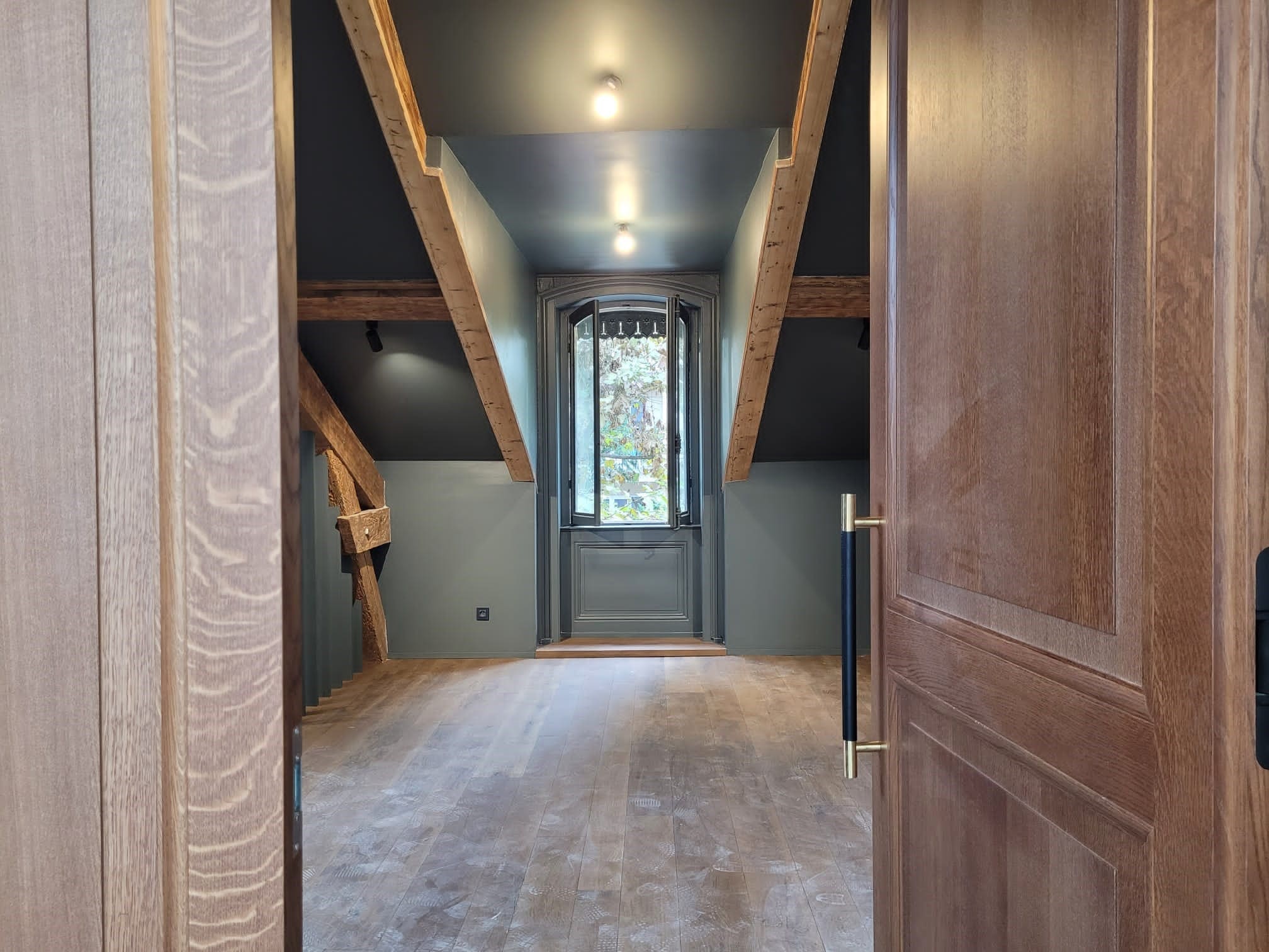 Les salons de Juliette, salons de conversation qui ont accueilli les grands esprits de leur temps. Cette pièce fait battre le cœur de la maison en accueillant des kick off, des événements professionnels, des concerts, des lectures, des projections de films, des actions caritatives… Nous y avons réalisé les bibliothèques et de magnifique plafond en bois.