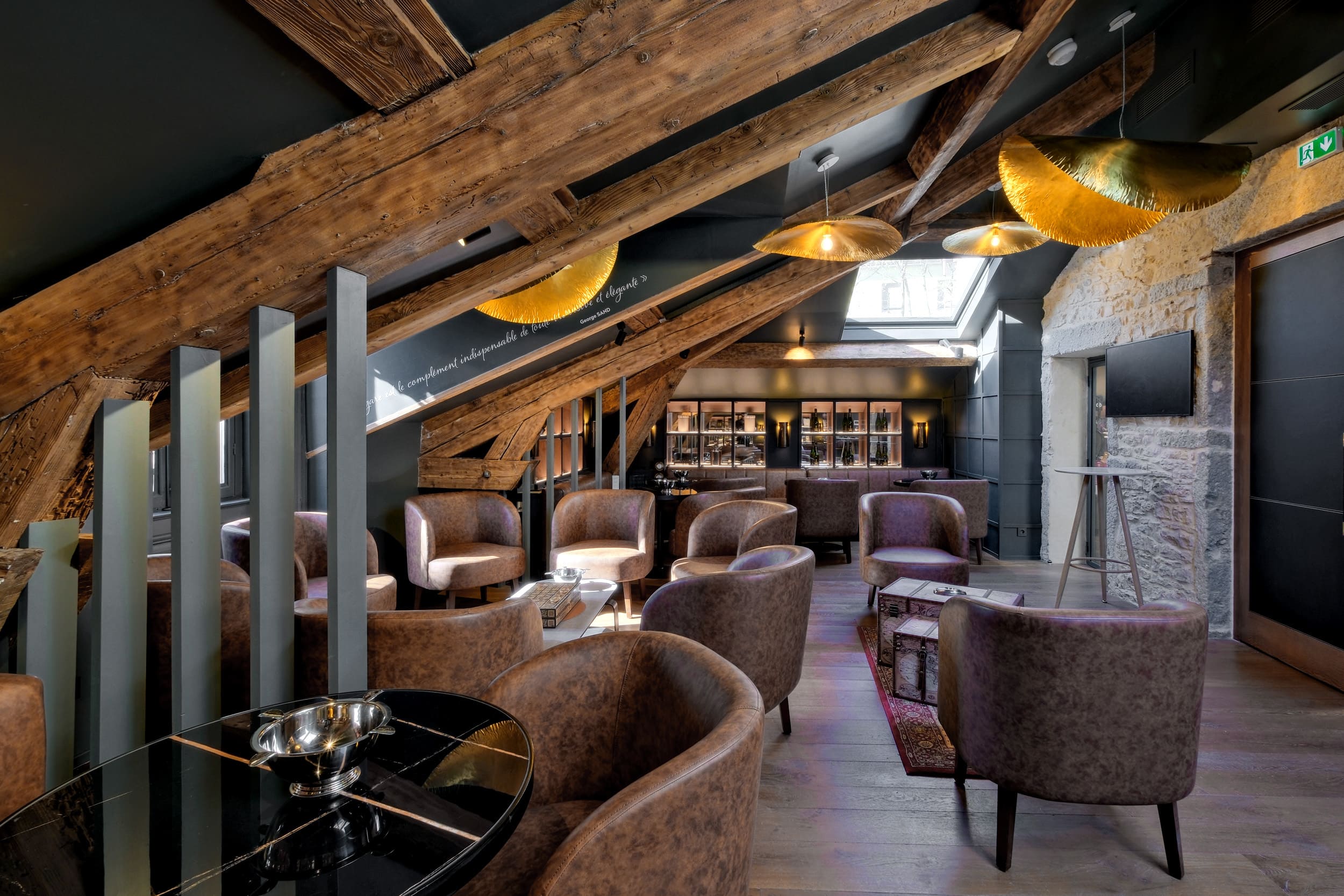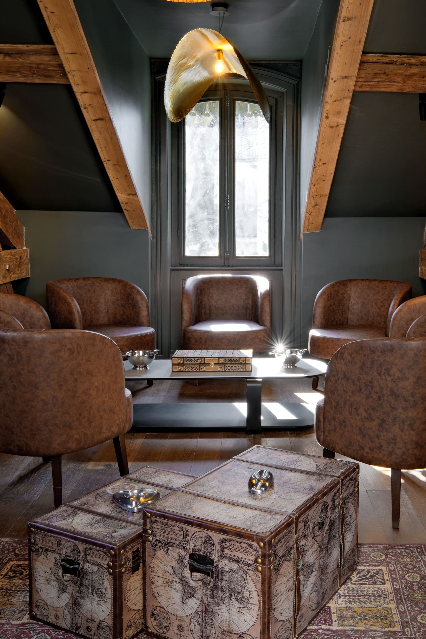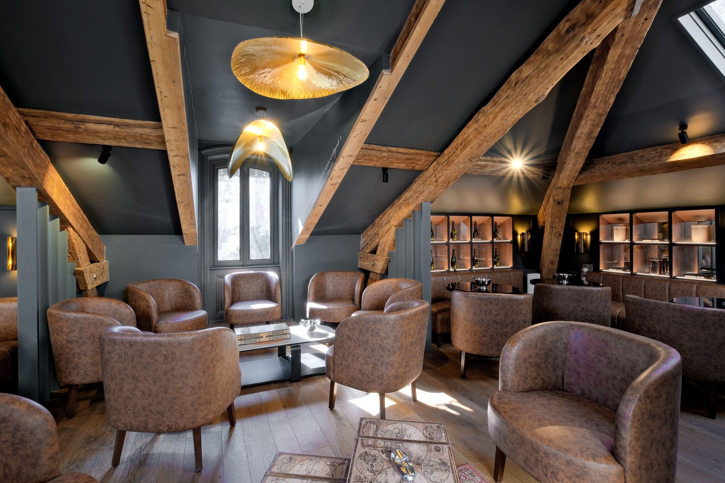 Le Fumoir George réserve une expérience inédite à ses membres, dans une ambiance feutrée au pur style londonien. Vous pourrez y admirer des claustras en bois massif sous la belle charpente, ainsi que les habillages muraux.